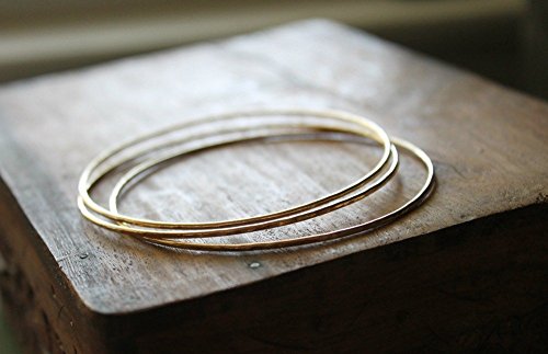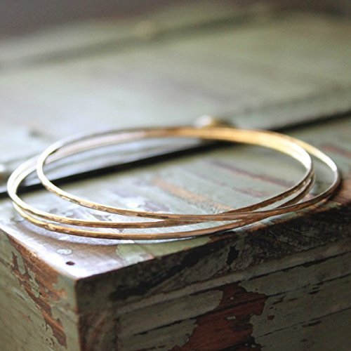 -. Title : 14K Gold Filled Hammered Bangles - Set of 3