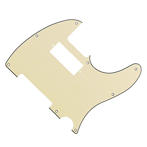 Product Description Feature:1. Telecaster style mini humbucker pickguard, normally fits to USA/Mexico Standard Telecaster guitar. (We have shown the dimensions for reference.)2. All materials are environmentally friendly, thermostability, no smell. Multi-layer plates are pressed under high temperature and pressures, to make them close integration between each layer, will not appear curly, deformation, or separation of different layers.3. Excellent product process ensure the edge of the smooth and structured.4. Two layers of protective films on the front of pickguards, anti-scratch to protect the guitar.Specification:a. Item: Tele style guitar mini humbucker pickguardMaterial: Pickguard made of 3ply PVC material.b. With standard 8 screw mounting hole pattern.c. Pickup hole is cut for a Seymour Duncan mini humbucker, hole size = 28.5mm x 68.5mm.d. The distance of the two pickup screws mounting holes = 75.2mme. Neckpocket cutout: 56mm; Bridge cutout: 87.7mmf. Color: Cream Colorg. With protective film on the surface, while using please split it off.Package Includes:1 x Guitar pickguard 0
