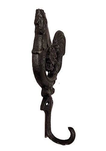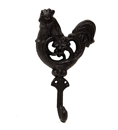 Rooster Decor Cast Iron Wall Hook, Coat Hook, Utility Hook (Black)