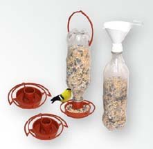 Gadjit 3 Hanging Wild Bird Feeder Kits (Terra Cotta) & 1 FREE Twist-on Bird Seed Filling Funnel -- Feed Wild Birds Promotes Plastic Bottle Re-use Pack of 3
