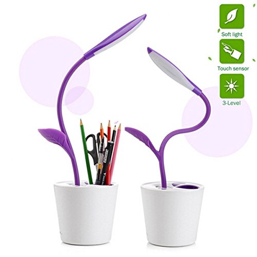 -. Title : KANGVO Flexible USB Touch LED Desk Lamp with 3-Level Dimmer and Decor Plant Pencil Holder,Multifunctional Sapling Pen Holder LED Desk Lamp For Bedroon,Office and Study