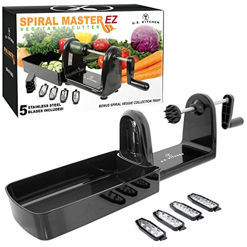 U.S. Kitchen Supply Spiral Master EZ Vegetable Cutter with 5 Versatile Stainless Steel Slicer Blades - Compact, Durable - Make Spiral Veggie Pasta, Spaghetti - Cut Fruit