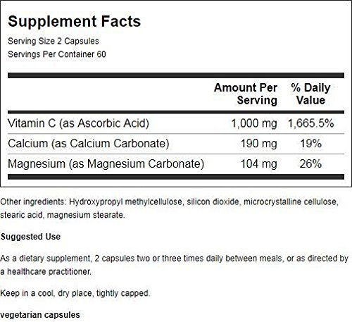 Buffered Vitamin C 500mg by Allergy Research Group 120 VegCap Buffered Vitamin C Capsules contains high-purity ascorbic acid buffered with carbonates of calcium and magnesium. Buffered C has an acid-alkaline buffering action that can help control the increased acidity often associated with allergic reactions. Developed by Stephen A. Levine Ph.D. Suggested Use As a dietary supplement 2 to 4 capsules two or three times daily between meals or as directed by a healthcare practitioner. Serving Size 4 capsules Servings per container 30 Amount per serving Vitamin C (as Ascorbic Acid) 500 mg Calcium (as Calcium Carbonate) 380 mg Magnesium (as Magnesium Carbonate) 208 mg Other ingredients Hydroxypropyl methylcellulose cellulose silicon dioxide stearic acid. These nutrients are of the highest quality and purity obtainable and do not contain preservatives diluents or artificial additives. Variations in product color may occur. Keep in a cool dry place tightly capped.Feature