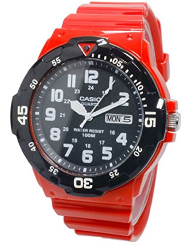 -. Feature : カシオ CASIO / 仕様 クオーツ、10気圧防水、樹脂ガラス、カレンダー(日・曜日)、カラー:ブラック(文字盤カラー)、レッド(ベルトカラー) / 素材 樹脂×ステンレス(ケース)、樹脂(ベルト) / サイズ (約)H42.5×W42.5×D11.5mm (ラグ、リューズを除く)、重さ(約)39g、腕回り最大(約)21cm、腕回り最小(約)14cm、ベルト幅ラグ付近(約)24mm、ベルト幅バックル付近(約)19mm / 付属品 ボックス、保証書、取扱説明書