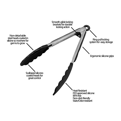 Studio : BEMZ Publisher : BEMZ Product Description About Products: 100% brand new and great quality. Heat-resistant up 482°F. Color: Black BPA and PVC free and FDA approved silicone. Perfectly used on cooking or BBQ indoors or outdoors. 9, 12 inch length can make you cook different food. Features: Ring-pull Locking system for easy to storage. Smooth-glide locking brackets for durable locking action. Ergonomic silicone grips. Non-detachable steel heads coated in silicone so nowhere for germs to grow. Scalloped silicone-coated heads for great control. Non-slip head design let them perfect for holding the food. Corrosion resistant. Packing List: 1Set Kitchen Tongs 0