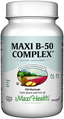 -. Binding : Health and Beauty -. Brand : Maxi-Health -. Feature : High potency B complex gluten free formula / Provides good energy and a healthy metabolism / Supports a healthy nervous system / Promotes relaxation during time of anxiety / Also contains 400 mcg of Folic Acid -. Label : Maxi Health -. LegalDisclaimer : These statements have not been evaluated by the Food and Drug Administration. This product is not intended to diagnose, treat, cure, or prevent any diseases. -. Manufacturer : Maxi Health -. ProductGroup : Health and Beauty -. ProductTypeName : HEALTH_PERSONAL_CARE -. Publisher : Maxi Health -. Studio : Maxi Health -. Title : Maxi Health B-50 Complex