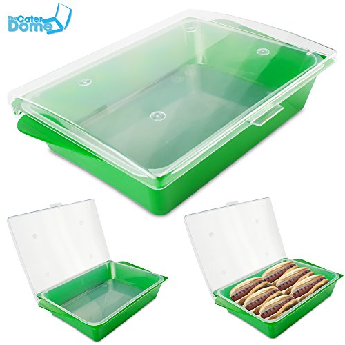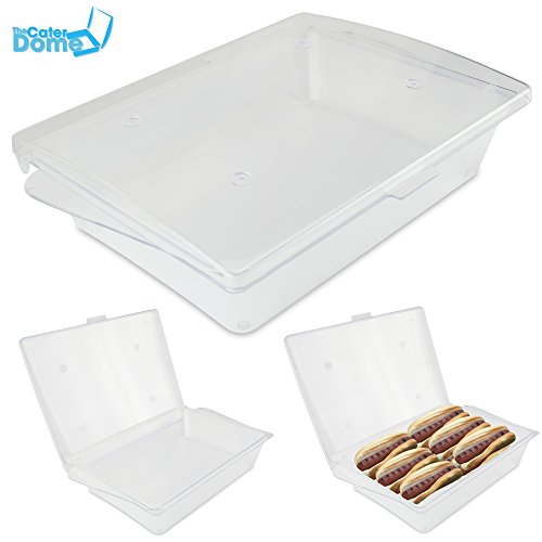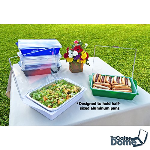 Cater Dome Picnic BBQ/Barbecue Catering/Serving Tray with Attached Transparent Lid and Microwavable Freezer Safe Food Grade Inner Tray - Aluminum Half Pans Fit Perfectly - Beautify Meal Time! No more Boring Aluminum Trays that aren't Re-usable. Package Contents: 1 Cater Dome Serving Tray (16 x 11.2 x 3.9 Inch Dimensions)