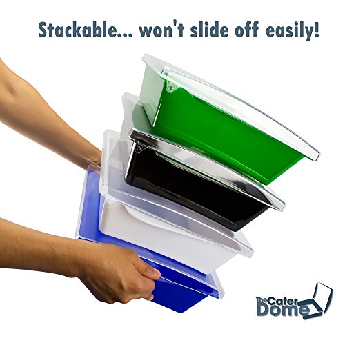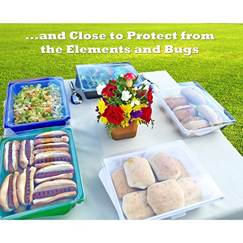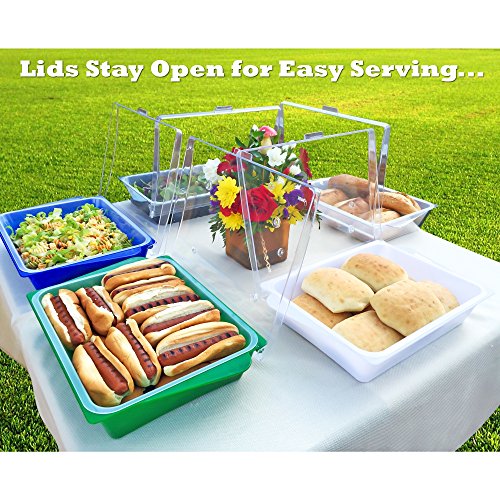 The Cater Dome was designed to beautify and simplify your picnic and catering experience. The lids are see-through so your guests can always see what's being served. The lids stay open when it's time for your guests to grab their yummy salads, burgers, desserts, and more. And when it's time to keep the food protected from pesky insects and rain, simply close those lids. No need to look for aluminum foil to cover your food!