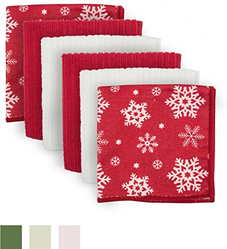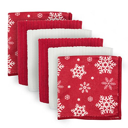 DII Microfiber Multi-Purpose Cleaning Towels Perfect for Kitchens, Dishes, Car, Dusting, Drying Rags, 12 x 12", Set of 6 - Snowflakes