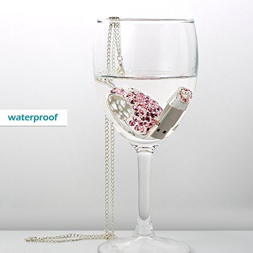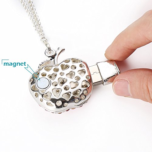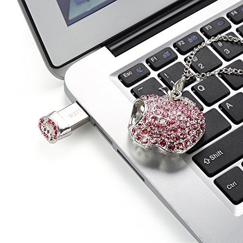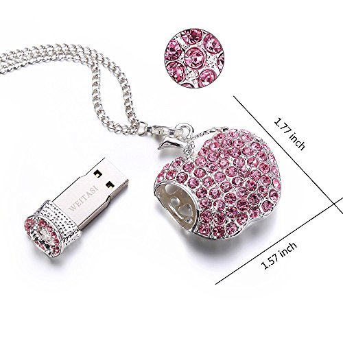 WEITASI Jewelry Crystal Apple Shape USB 2.0 Flash Drive 8GB/16GB/32GB/64GB U Disk With Gift Packaging For PC,Pink Necklace