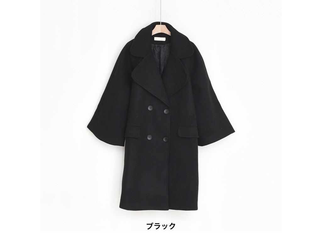 ブラックのチェスターコートです。袖口がひろがるマントのようなデザインとなっています。カジュアルコーデでも、このチェスターコートを取り入れれば、とってもおしゃれにキマりますね。とても丁寧なつくりとなっています。1.基本情報色:ブラックサイズ:Free素材:-製造国:China2.サイズ情報肩幅:ナグランデザイン身幅(胸断面):59cm 腕の長さ:60cm 着丈(前):93cm (サイズは計る方法に応じて±2〜3cmの誤差があります。ご了承お願い致します)モデル着用サイズ:F※着用モデル(163cm、体重47kg、足のサイズ24.5cm)3.その他の情報厚み:中間透け感:なし伸縮性:なし裏地:あり洗濯方法:ドライ(クリーニング)[注意事項]お取り寄せ商品は、海外より仕入れるため納品まで約10日前後いただきます。また店舗でも販売しており、在庫切れになる場合もございます。ご了承お願い致します。