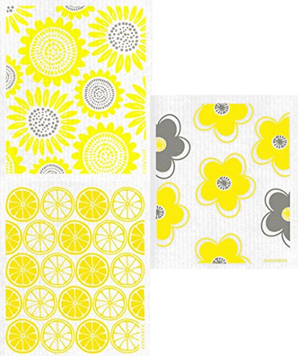 -. Feature : Contemporary Swedish Dish Cloths - 3 Coordinating Designs / All natural materials: 70% Cellulose & 30% Cotton / Designed in Sweden, P.R.Inted in the UK with water based inks / Reusable & 100% biodegradable; approximately 6.75 x 8 inches / Absorbs an amazing 15 times its own weight in water
