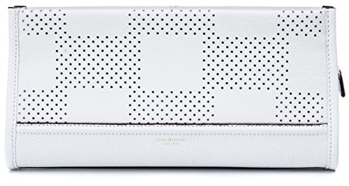 This clutch is great for going out. Small, but roomy, the interior can hold your phone, wallet, and other small essentials. The subtle checker board perforated pattern adds just the right amount of style.