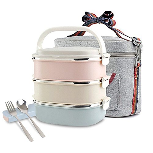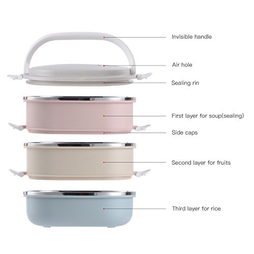 - ※UNIQUE DESIGN: can also be used as one layer or two layers. The TOP TIER features a vacuum seal to prevent spills for soup, a comfortable handle to better carrying; while the second and third tier is NOT SPILL PROOF for SOLID FOOD.