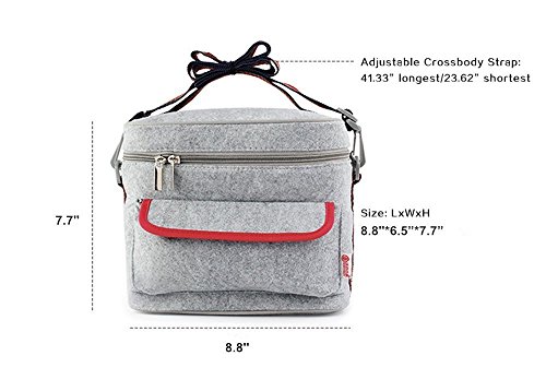 - ※Lunch Bag: keep hot & cold for hours, felt + foil design provide double insulation, adjustable Crossbody Strap & grab handle makes it portable to carry, small front pockets provide space for forks and spoons.