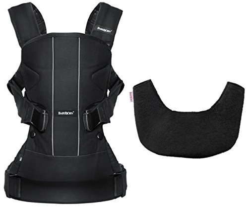 BABYBJORN Baby Carrier One Bundle Pack - Black, Cotton Mix and Bib for Carrier One