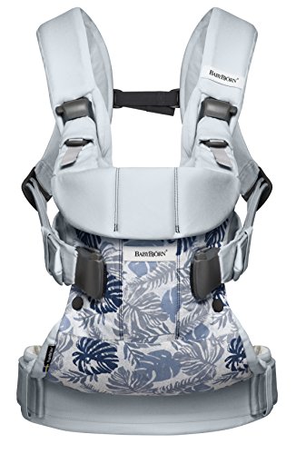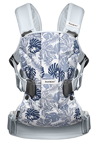 BABYBJORN Baby Carrier One - Leaf Print/Pale Blue, Cotton (Limited Edition Color)