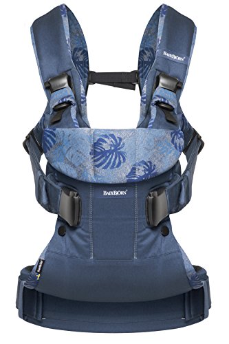 BABYBJORN Baby Carrier One - Midnight Blue/Leaf Print, Cotton (Limited Edition Color)