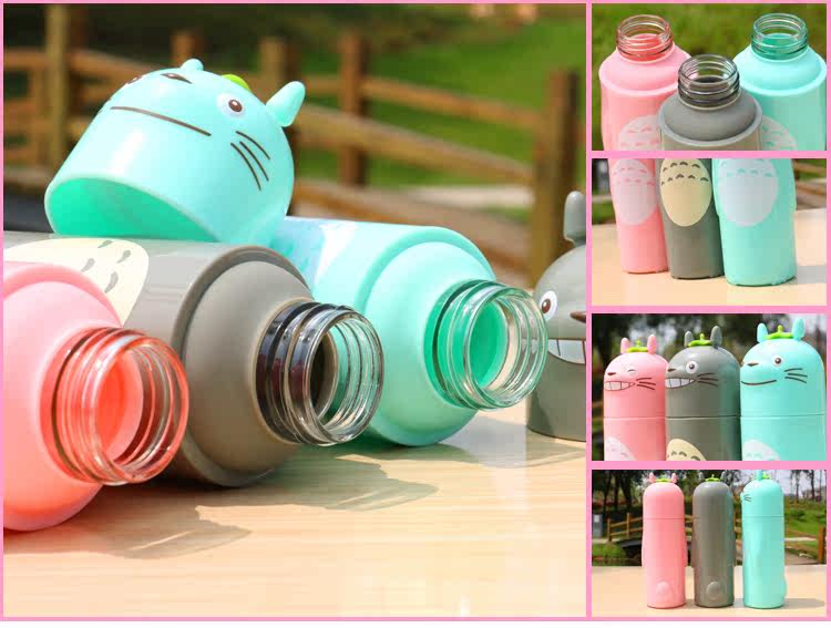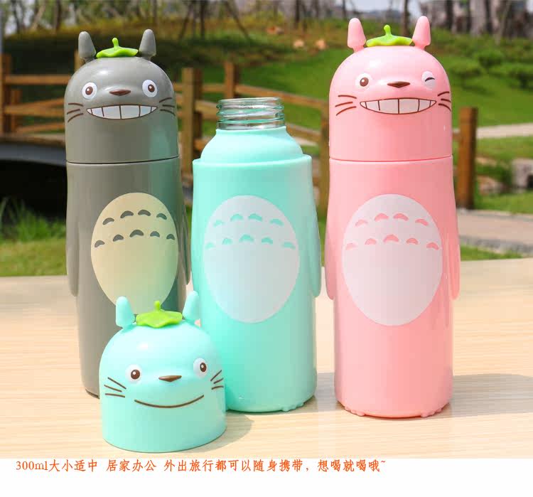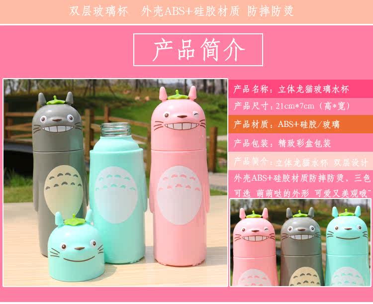 卡通立体龙猫双层玻璃杯防摔防漏学生便携水杯子男女车载茶杯随行