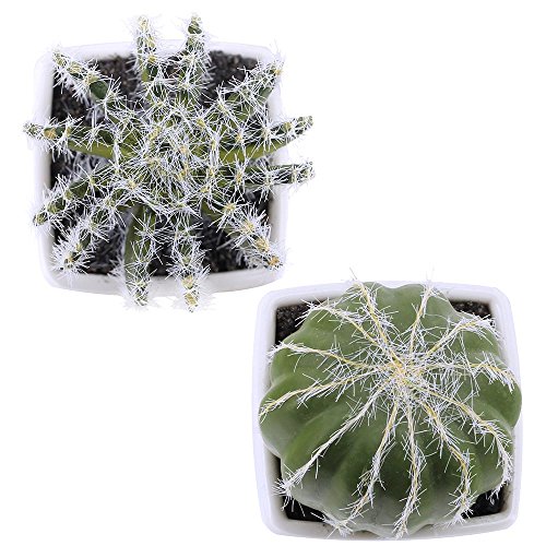 Set of 2 Artificial Mini Succulent & Cactus Cacti Plants in White Cube-Shaped Pots