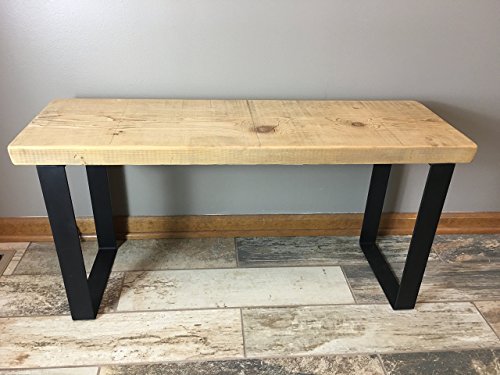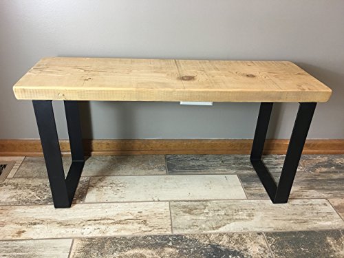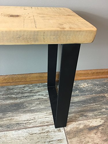 -. Title : Reclaimed Urban Wood Bench Made From Salvaged Barn Wood - Flat Steel Legs - Natural Finish | FREE SHIPPING