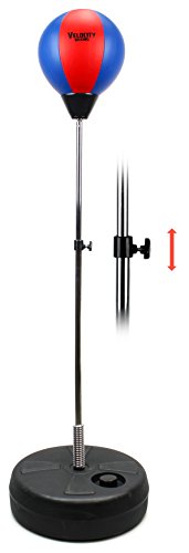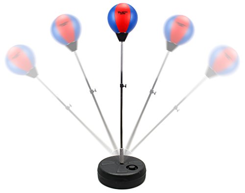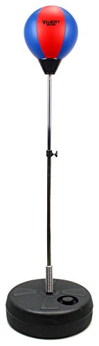 Velocity Boxing Children's Deluxe Freestanding Reflex Punching Bag w/ Pair of Gloves, Hand Pump, Adjustable Height 35 - 53" (Red/Blue)