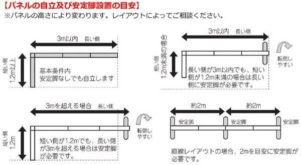 | 長い直線レイアウトではパーティションが不安定になり転倒の恐れがあります。安定脚を設置することにより、ローパーティションの転倒を防ぐことが出来ます。 |