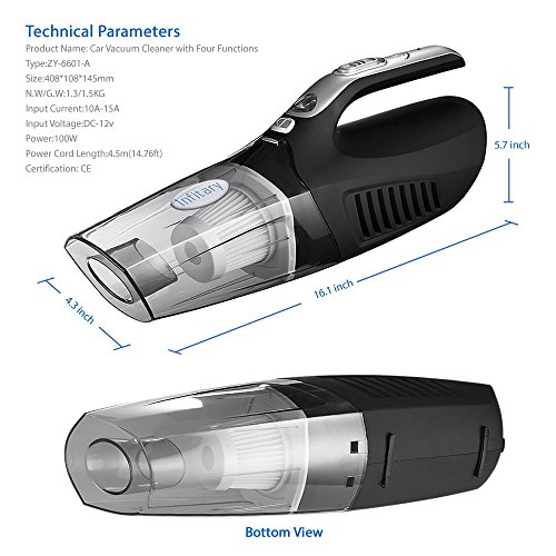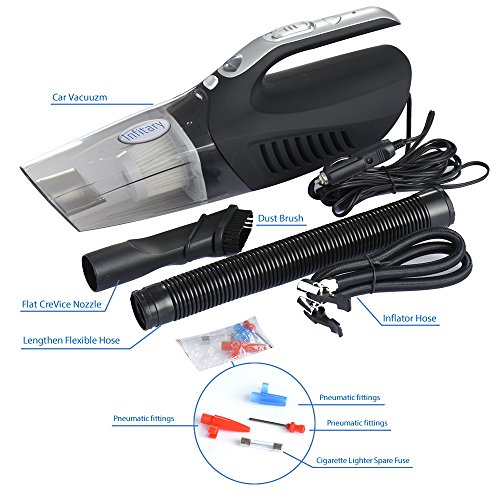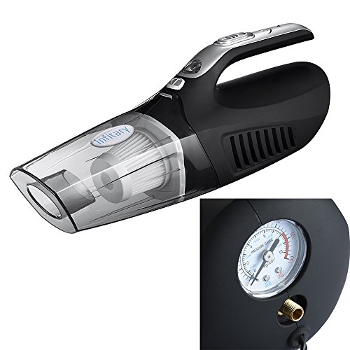 -. Title : Infitary® 4-in-1 Handheld Auto Car Vacuum Portable Dust Vacuum Cleaner Collector Wet/Dry 12V 100W Vacuum with Tire Inflator Tire Pressure Gauge and Led Light
