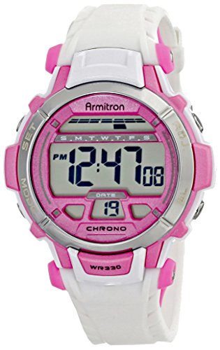 ARMITRON SPORT WOMEN'S 45/7036WHT PINK ACCENTED WHITE RESIN STRAP DIGITAL CHRONOGRAPH SPORT WATCH