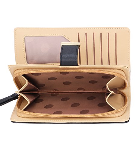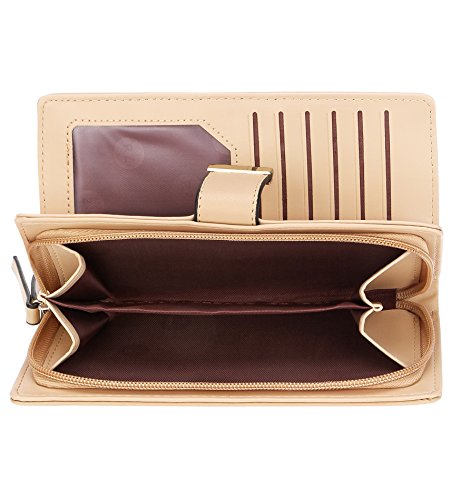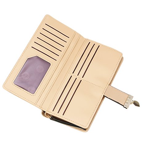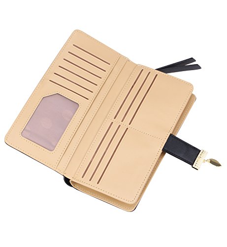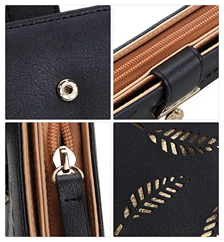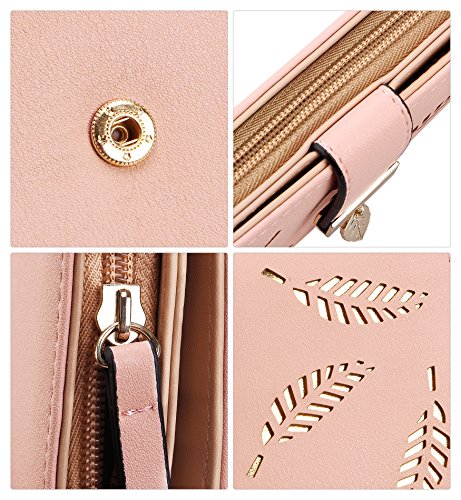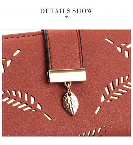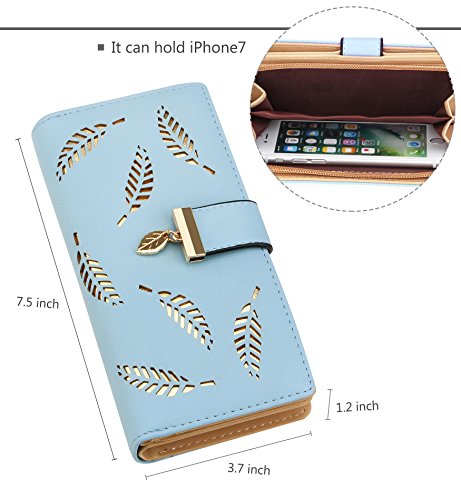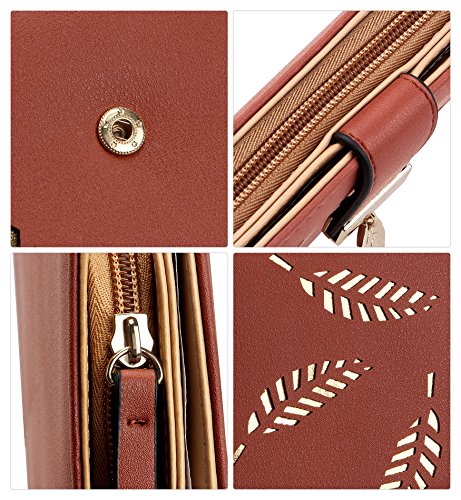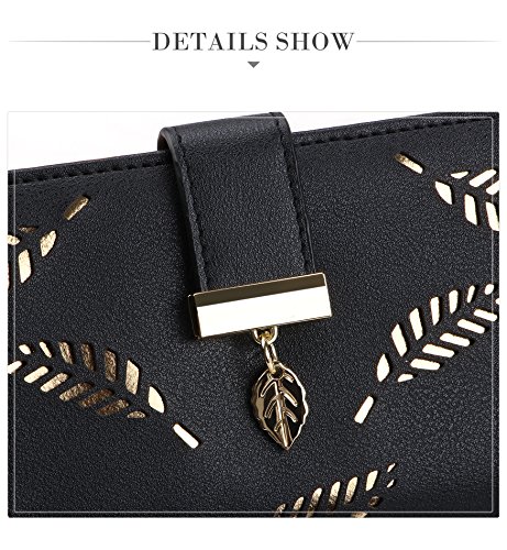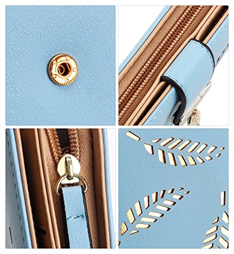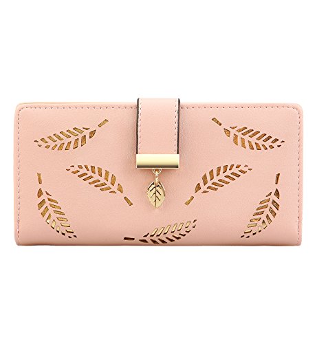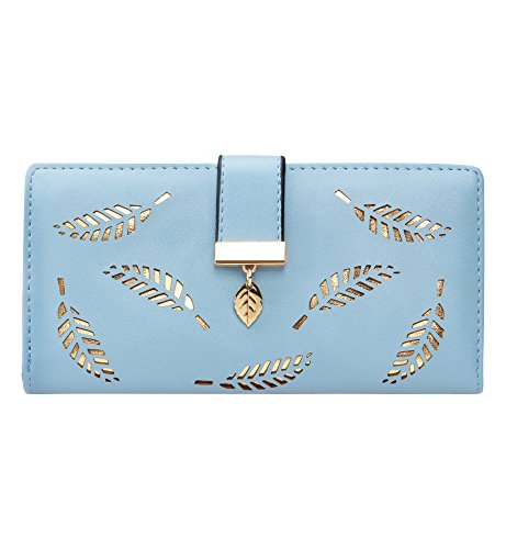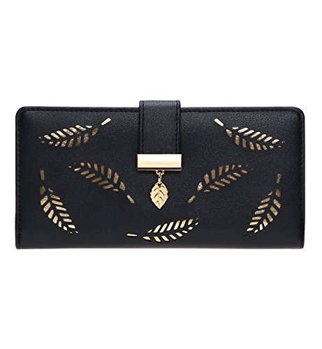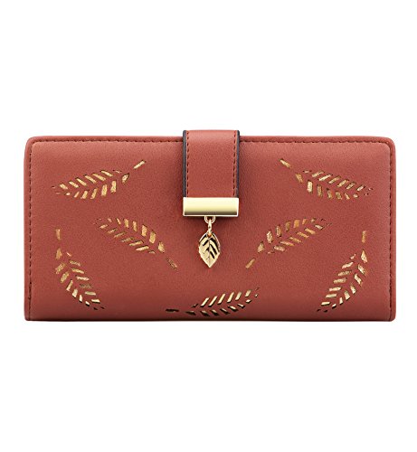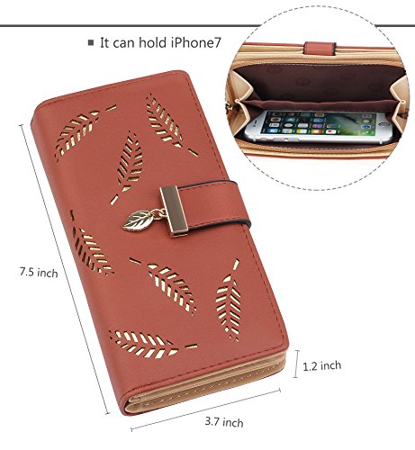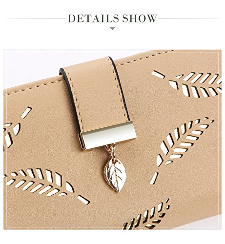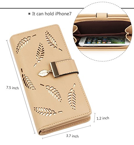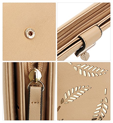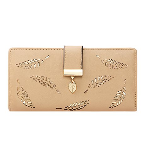 Tom Clovers Womens Golden Leaf Long Leather Wallet Purse Coin Purse With Zipper Clutch Card Hol...