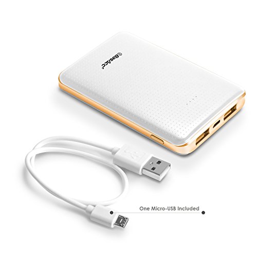 Charge your devices on-the-go with this backup power bank. Color: White/Rose Gold Frame. Large 6000mAh capacity. Super-fast charge output: 5V 2A. Long lifespan: Provide over 500 times for re-charging/ dis-charging. Fast charging: 3 hours to fully charge the power bank. Auto detect input current and output voltage, energy lost protection, over charge protection, over current protection, over voltage protection and short circuit protection. Dual USB port to charge two devices at one time. Anti-slippery pattern. Built-in LED light indicates charging status of the power bank itself. RoHS, FCC and CE certified. Ultra slim and stable internal Li-polymer rechargeable battery. Charges cell phones, MP3 players, handheld gaming devices, digital cameras. Compact, lightweight and portable. Package also includes a micro USB cable. BasAcc® is a registered trademark. Only authorized seller of BasAcc® can sell under BasAcc® listings. All rights reserved. All trade names are registered trademarks of respective manufacturers listed.