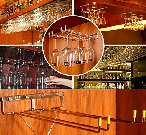 Studio : LINEX Publisher : LINEX Binding : Kitchen Product Description LINEX 2 Rows Wine Glass Rack FUNCTIONAL ELEGANT: Made of oil rubbed chrome this stemware rack adds a touch of elegance to your kitchen or bar's decor. With durable construction, the rack is easy to clean and will last a lifetime. Your stemware will accent your existing cabinetry in this convenient storage unit EASY TO INSTALL: The rack comes fully assembled but requires installation. Hardware included for easy mounting. Installation is a breeze with the included screws and anchors. Fits under most cabinets. Details: Brand:LINEX Size: 8.85" x 8.85" Weight: 0.3 kgs Color: Silver Package Includes: 1 x LINEX Black hanging wine glass Rack 4 x Screws and Anchors 0