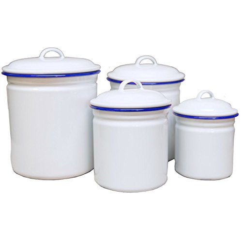 Enamelware 4 Piece Canister Set - Solid White with Blue Rim