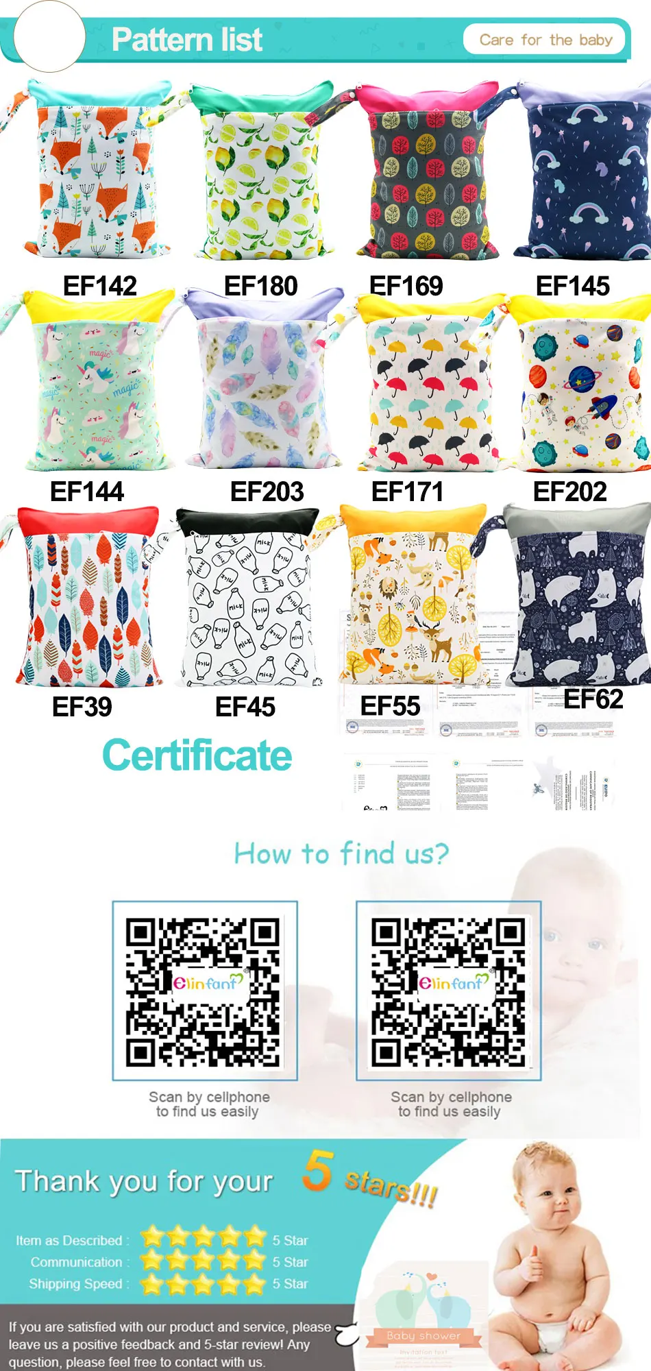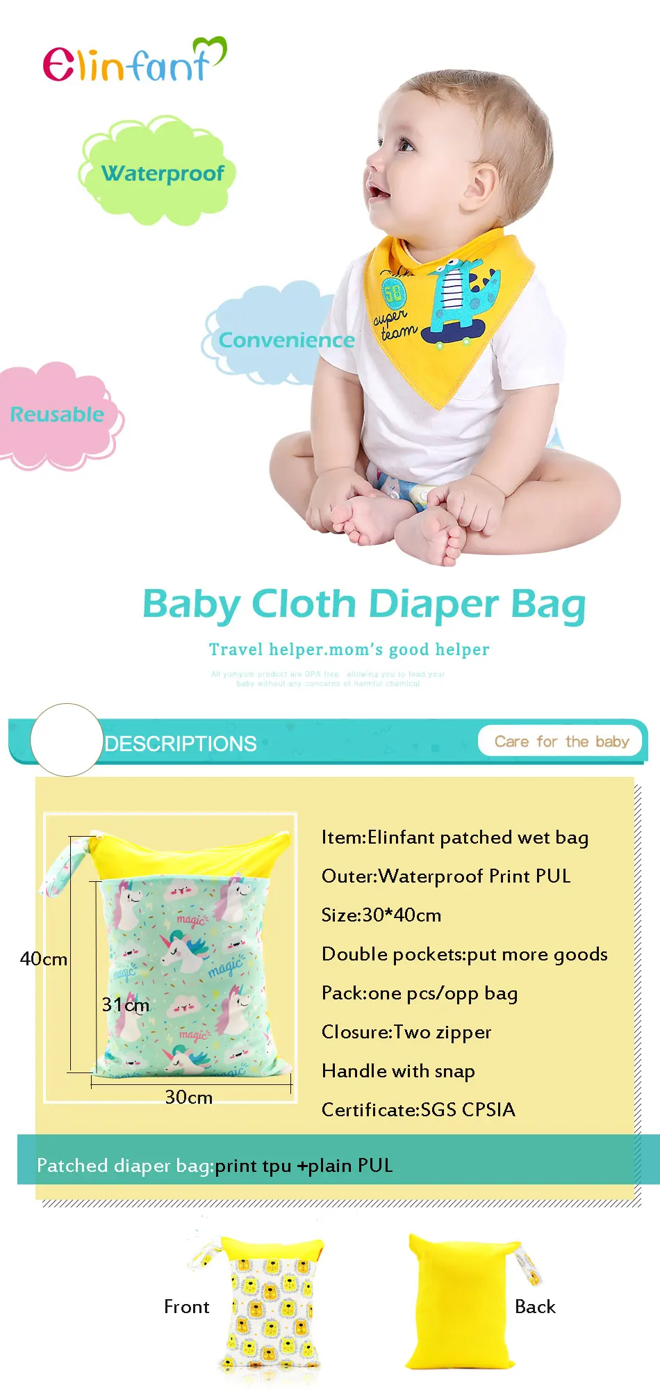 Name:Elinfant New Patched Wet Bag Washable Reusable Cloth diaper Nappies Ba