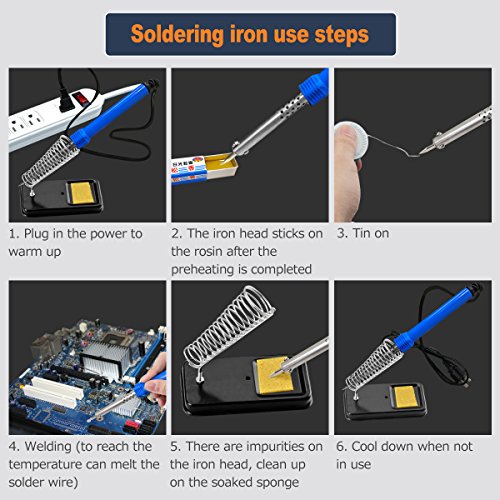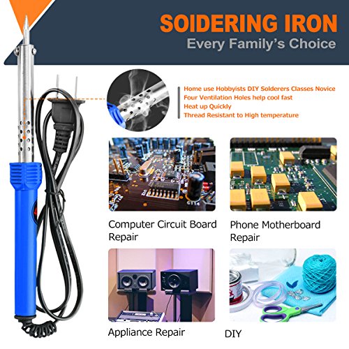 - 【Soldering KIT】 - Soldering iron kit comes with soldering iron, solder wire, desoldering pump, stand with cleaning sponge, 5 multiple soldering tips, anti-static tweezers, and a hard carry case to meet all your soldering project needs.