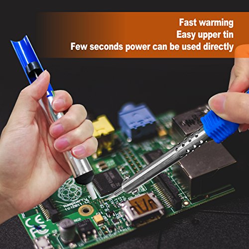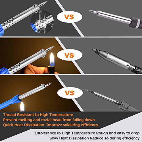 - 【HEAT UP QUICKLY and HEAT DISSPATION EFFICIENCY】 -60 watts, heat up quickly(2 minutes or so). Adjustable temperature with thermostat range 200~450℃. With our upgrade steel-pipe design, the soldering iron is more efficient in a better heat dissipation.