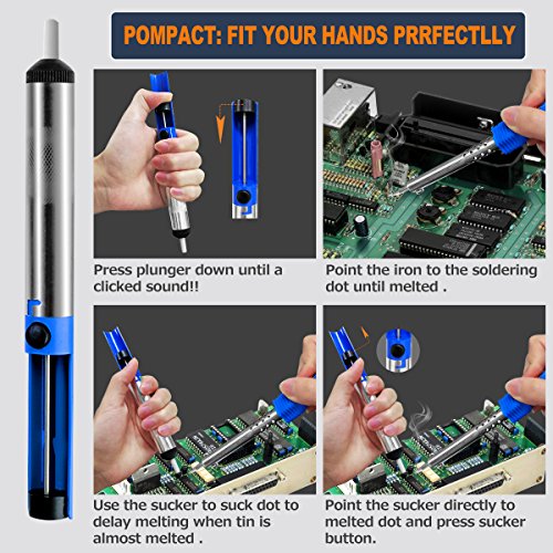 - 【DESOLDERING PUMP】 -The desoldering pump(solder sucker) is high pressure vacuum tube with aluminum body frame, which allows easy one-handed use; best for removing solder from PCB through hole solder joints.