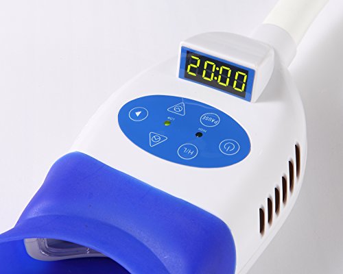 -. Feature : Simple, light and handy molding design. / Freely to adjust to any angle position,10 pcs high power LED, fan-cooled. / Unique semi-circular head design, both arches whitened at the same time. / 1-20 minutes adjustable timer, suitable for more brands tooth whitening gel. / Led screen shows all the information. All the operation is so easy. It's suitable for dental chair uP.R.Ight of 45~50 mm diameter .