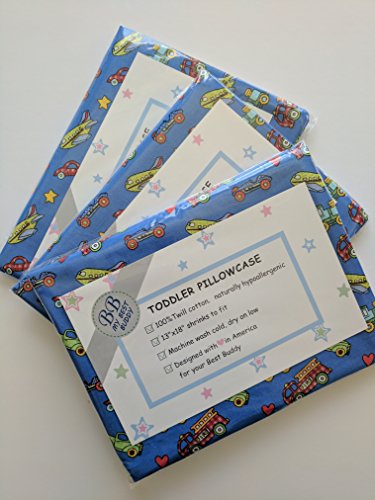 BB MY BEST BUDDY Toddler Pillowcase- Trucks and engines design for your kids - 13 x 18 - shrinks to fit - 100% cotton - naturally hypoallergenic and soft - Made in USA
