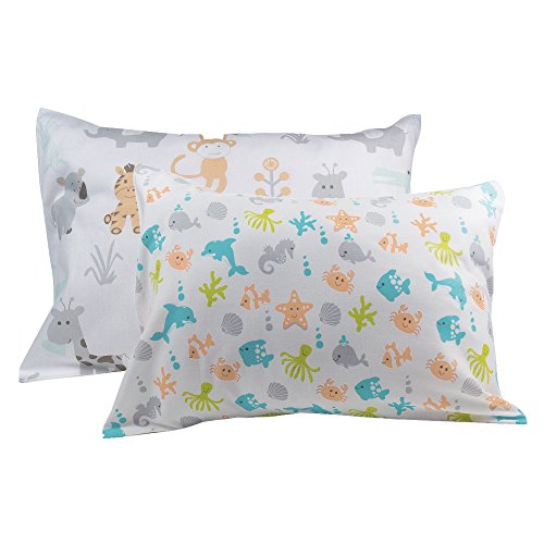 BB MY BEST BUDDY Toddler Pillowcase- Safari and Ocean Animals - 2 PACK - 100% cotton - Ocean and Safari Animals for your kids - 13 x 18 shrinks to fit -envelope style closure - designed in USA