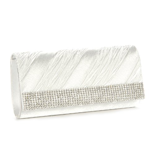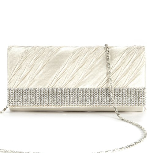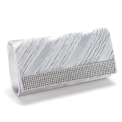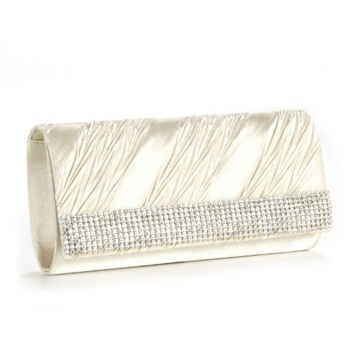 this gorgeous bag is made from soft satin with pleated and crystal detail.