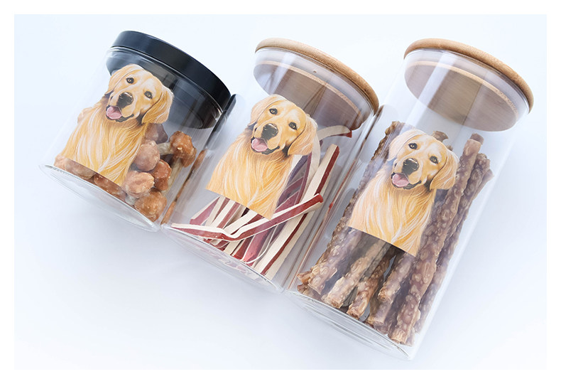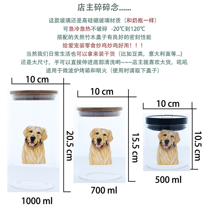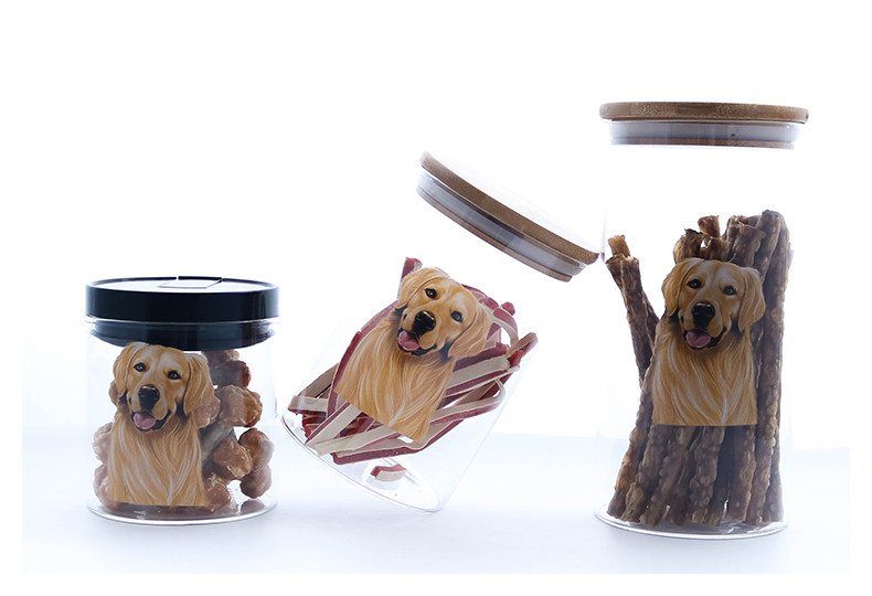 原创金毛系列透明宠物零食罐杂粮瓶厨房储物罐密封罐家用收纳瓶子