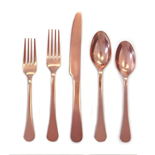Cambridge Silversmiths 20 Piece Indira Katni Flatware Set, Rumbled Copper, Service for 4