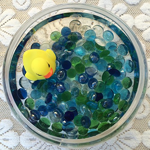 - Package includes 1 pound glass gems of 4 different colors, clear, light blue, green, and royal blue