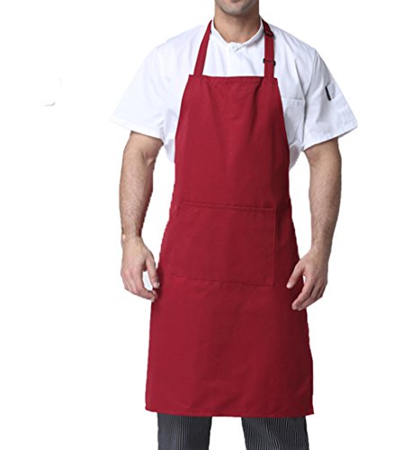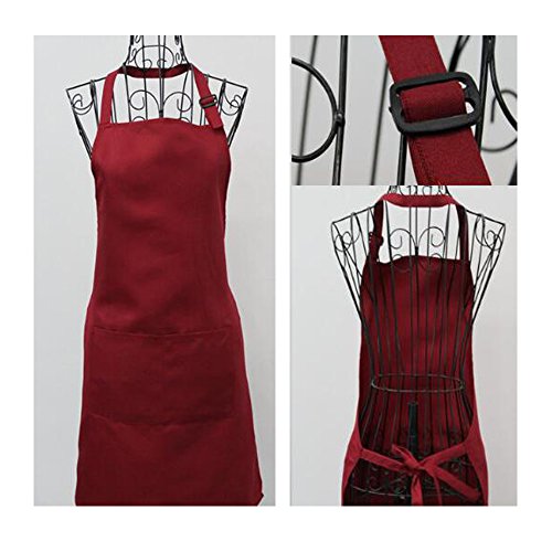 YUMMAYEE Kitchen Apron Waterproof Adjustable Neck Straps Apron Darkred