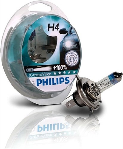 Philips H4 X-treme Vision Car Headlight Bulbs. 12v 55w.