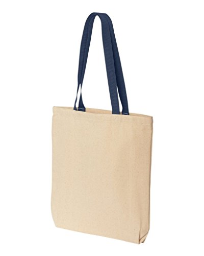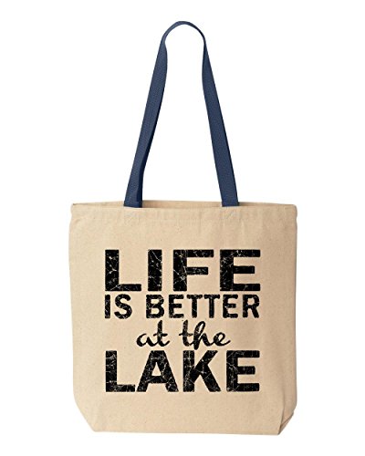 Shop4Ever Life is Better at the Lake Black Cotton Canvas Tote Sayings Reusable Shopping Bag 10 oz Natural - Navy -Pack of 1- Colored Handle