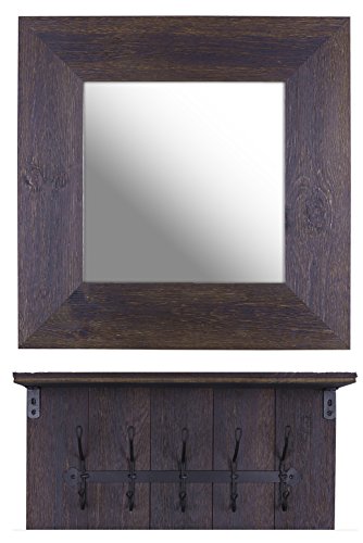 - Decorative hanging towel rack with hooks and accent wall accent mirror with shelves 2-piece set will brighten any bedroom, living room or bathroom.