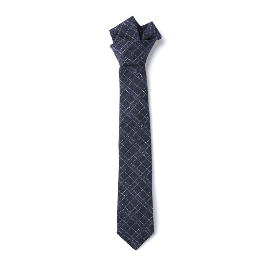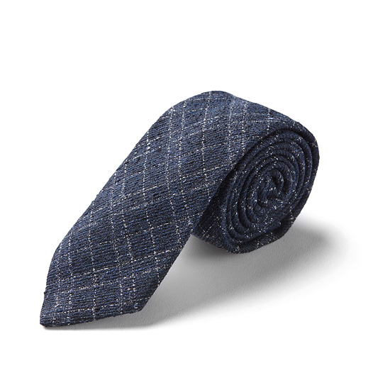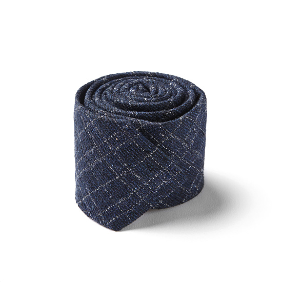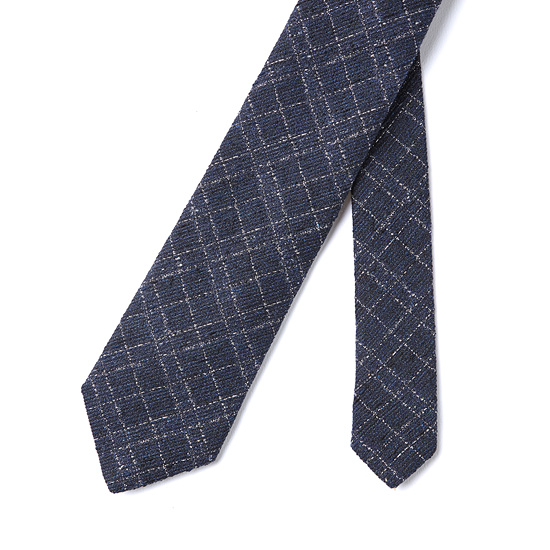 - 조직감 바탕에 스티치 체크 자수로 포인트를 준 남성 넥타이.