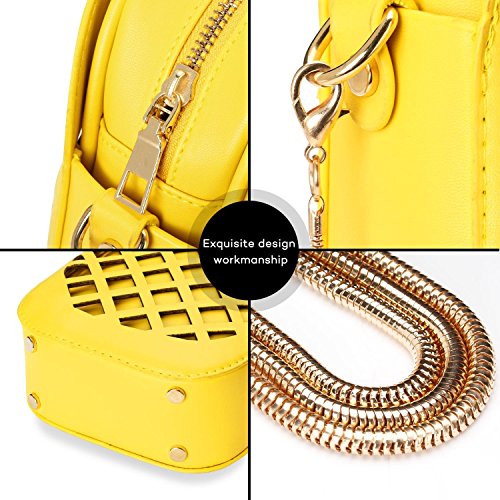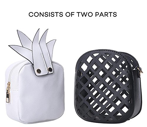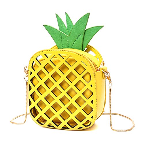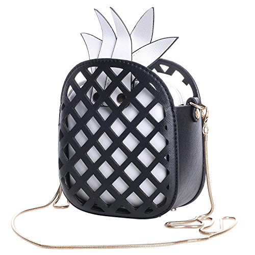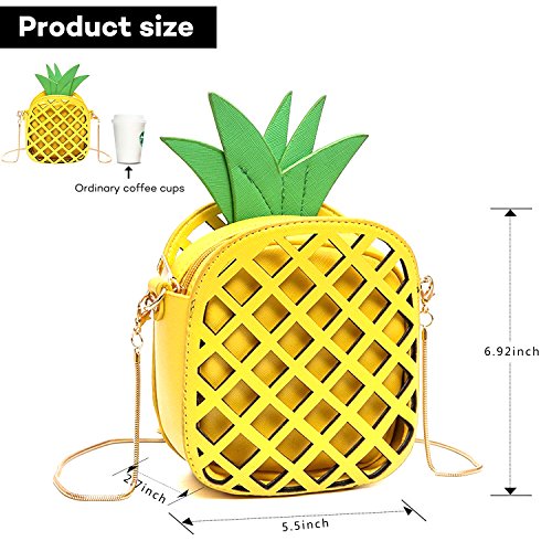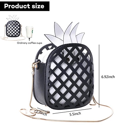 -. Feature : SIZE: 5.5"Length x 2.7"Width x 6.29"Height. / MATERIAL: PU leather. High quality made of the original material. / DESIGN: A new fashion pineapple shape & hollow out style cross-body bag with golden thin straps, small and lightweight clutch has enough room for your cellphone, lipstick, cash and credit cards and other small items. / SUITABLE: Will fit any style of clothing. You can choose suitable color to fit Your clothes for dating, shopping, working, traveling, outdoor and indoor. / SERVICE: Quality problems within six months of free return, the seller bear the freight. Non-quality problems, does not affect the second sale, it can be a replacement within a month.